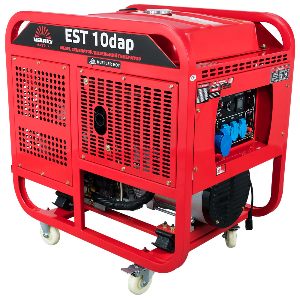 Дизельні міні‒електростанції Vitals Master EST 10dap (однофазна) EST 10 3dap (трифазна) являють собою лінійку спеціалізованого генераторного обладнання, що виробляє електроенергію для споживачів одно‒, трифазних мереж (380В/220В) значної потужності до 10кВт.